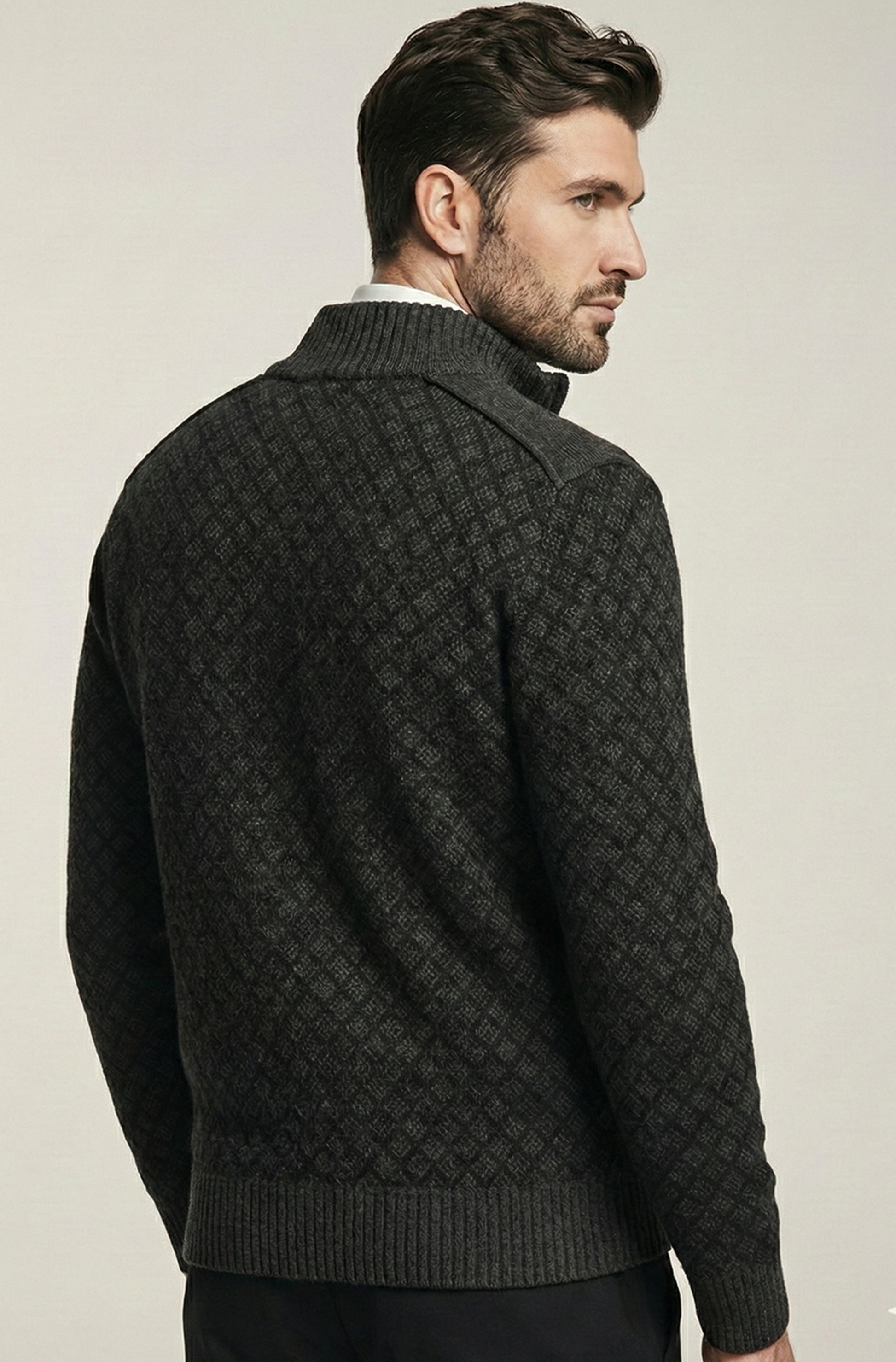 Stickad Jacka med Hög Krage och Geometriskt Mönster | Johan – Svart