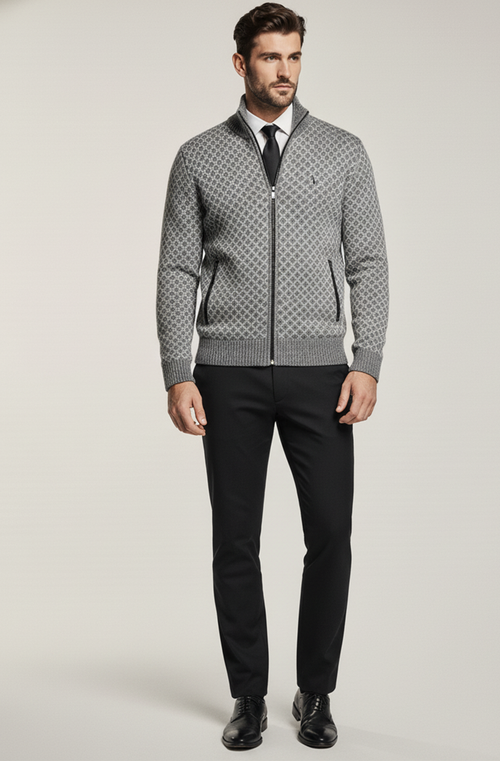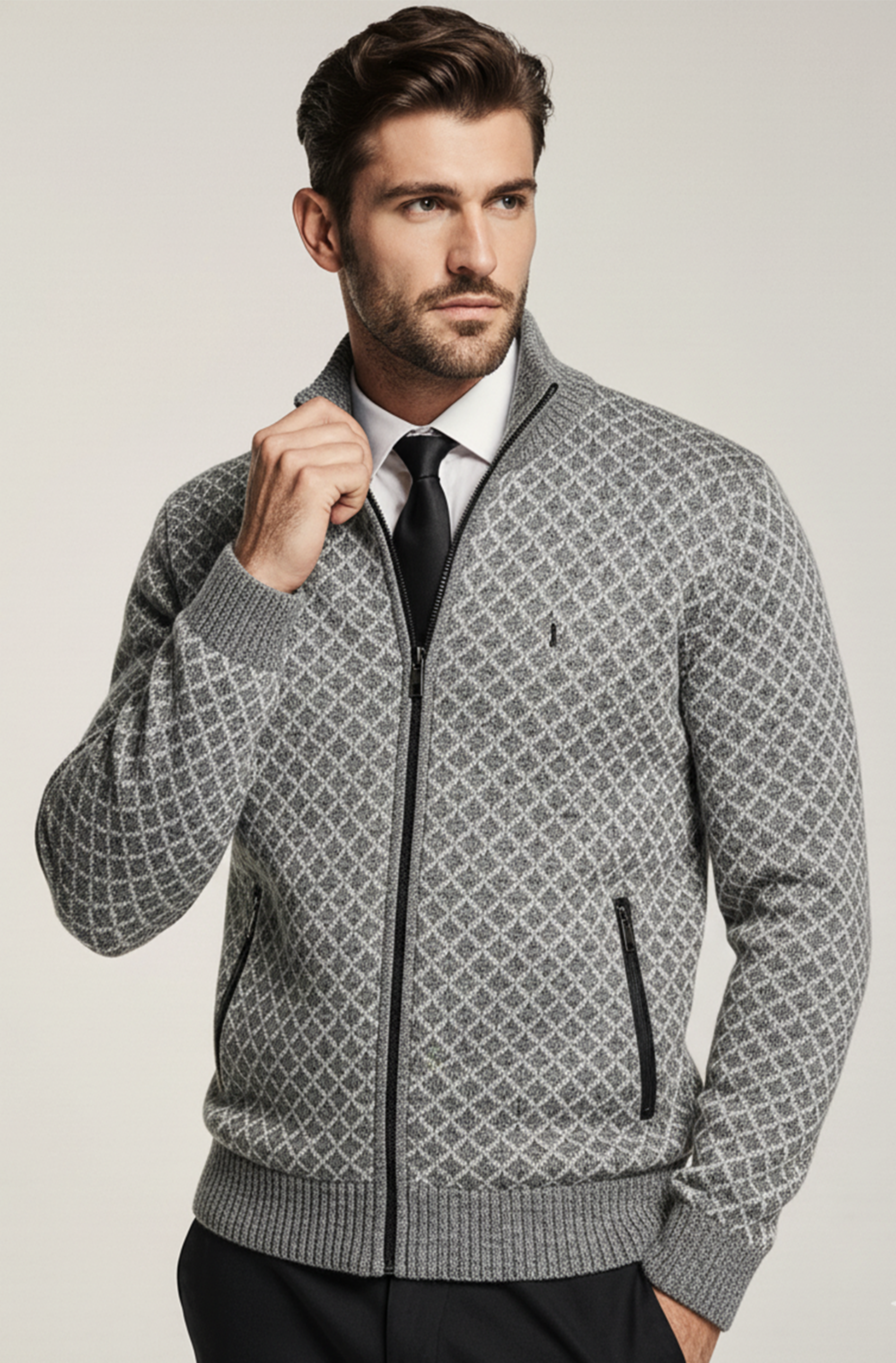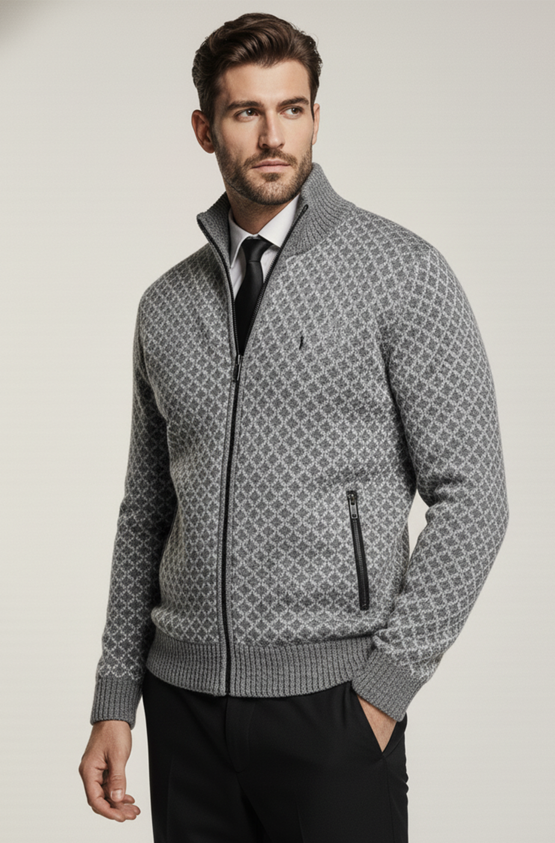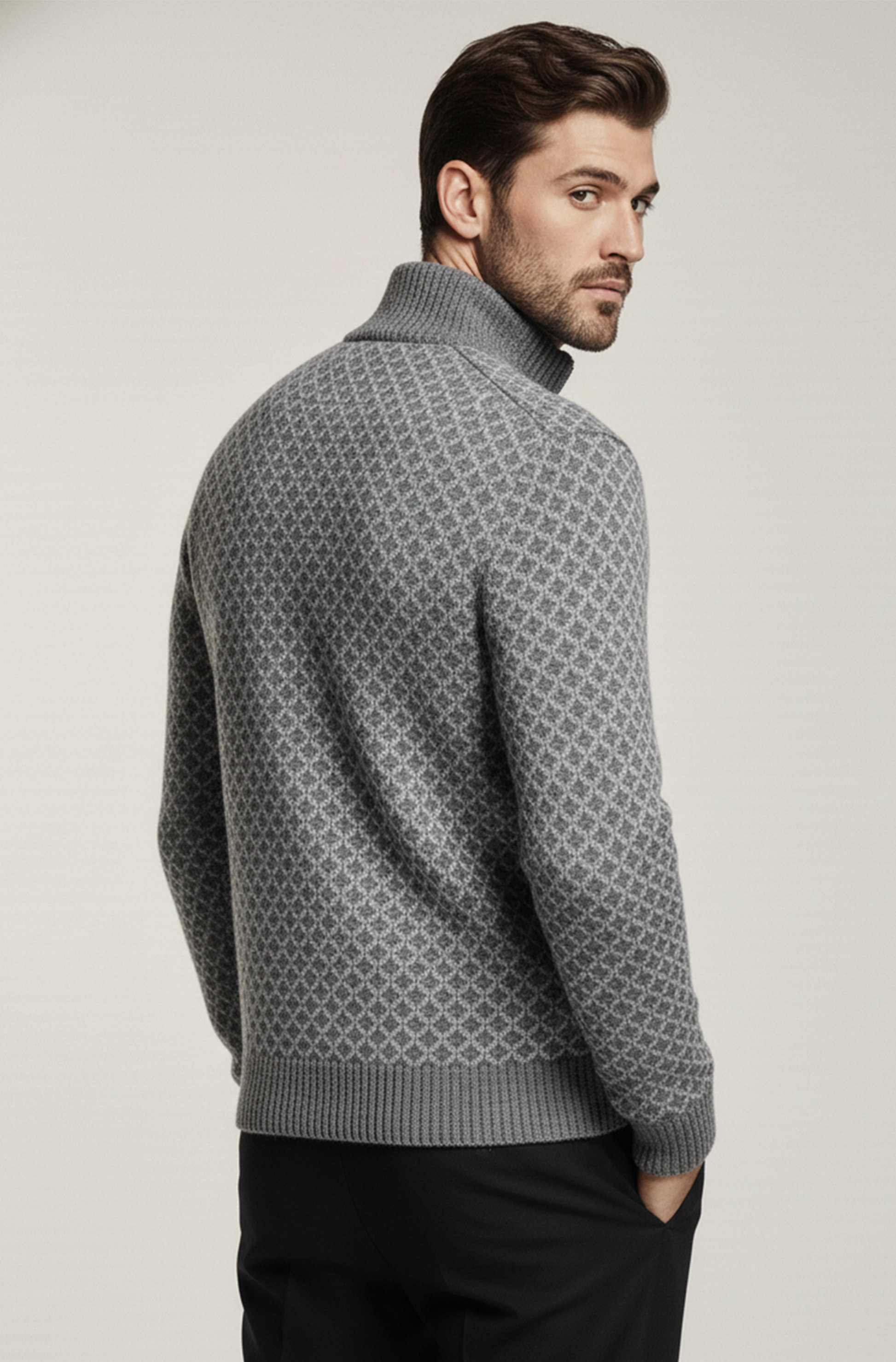 Stickad Jacka med Hög Krage och Geometriskt Mönster | Lennart – Grå